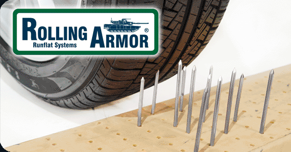 Actualmente tenemos a disposición el sistema de blindaje para llantas RollingArmor Armor International, para todo tipo de llantas. Camionetas, automóviles y vehículos que usan un perfil rin 13", hasta un rin de 22".